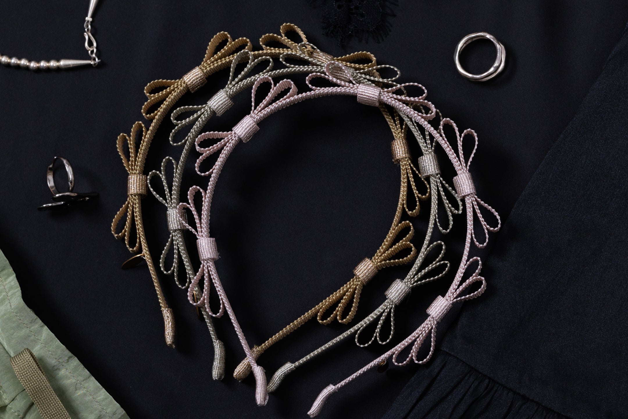 Sold outSilk×Perl Bijou Headband【MINT】