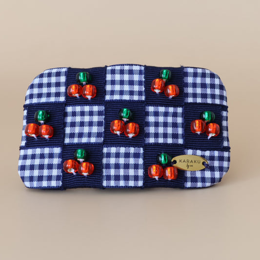 Cherry Gingham Mini Barrette【NAVY】