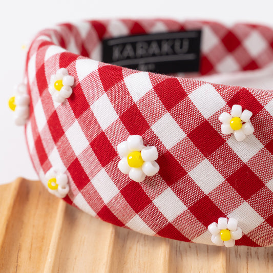 Gingham Daisy Headband【RED】