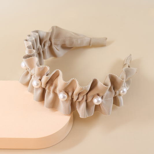 Frills Ribbon×Perl Headband【BEIGE】