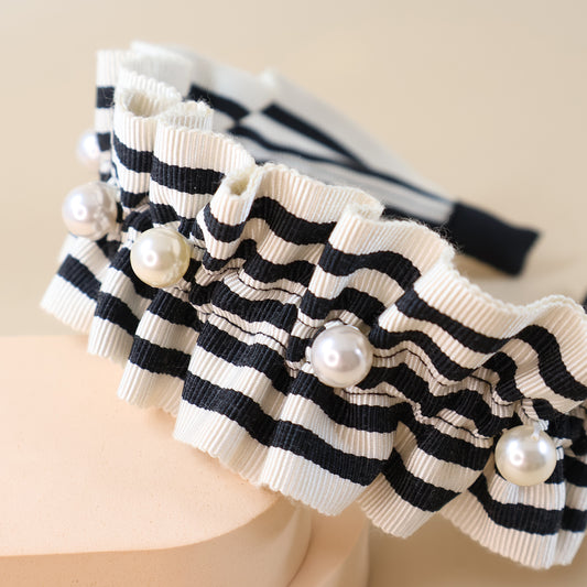 Frills Ribbon×Perl Headband【STRIPE】
