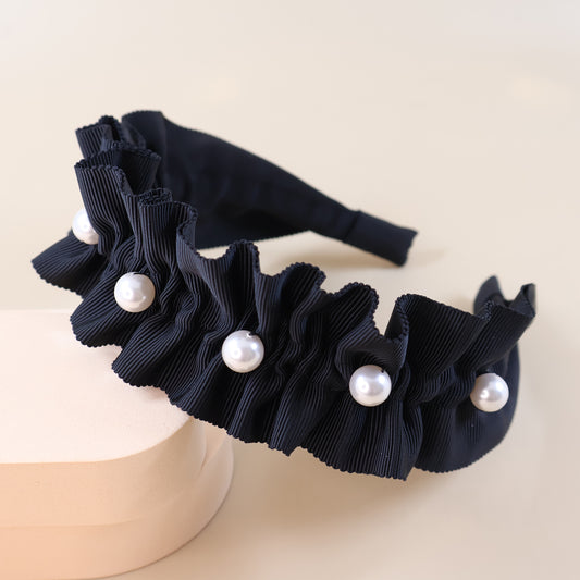 Frills Ribbon×Perl Headband【BLACK】