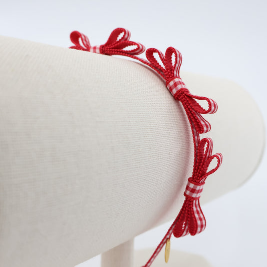 Mini Ribbon Headband【GINGHAM RED】